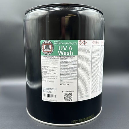 UV A Wash is specifically engineered to remove all UV ink colors effectively without damaging rollers and blankets. After extensive research into existing UV washes, Allied developed this advanced formula to deliver powerful cleaning performance without the harsh effects that shorten equipment lifespan. Choose UV A Wash for a reliable, efficient solution that keeps your press running smoothly.